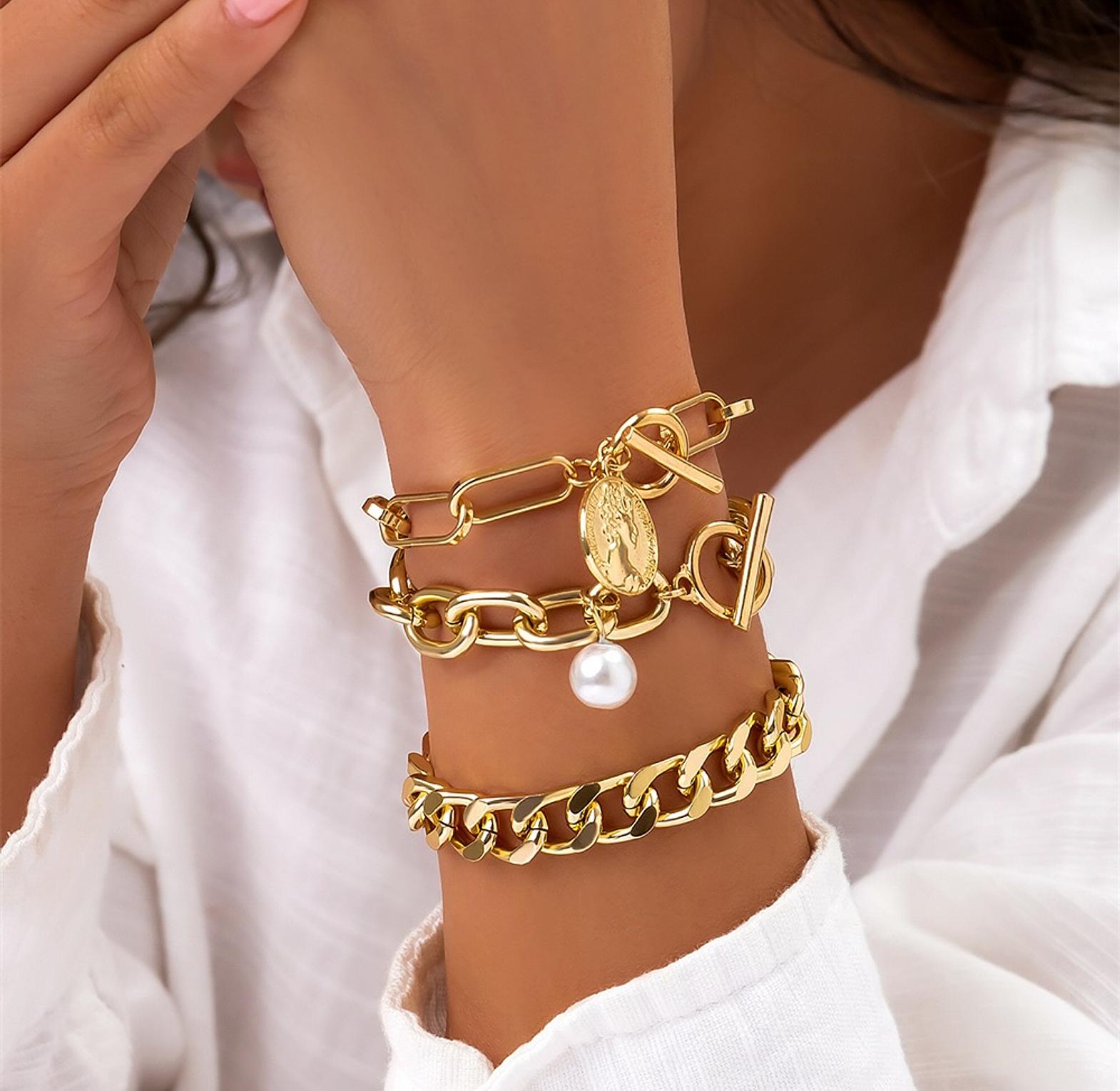 Elegant 3-piece chain bracelet set for a chic layered look.