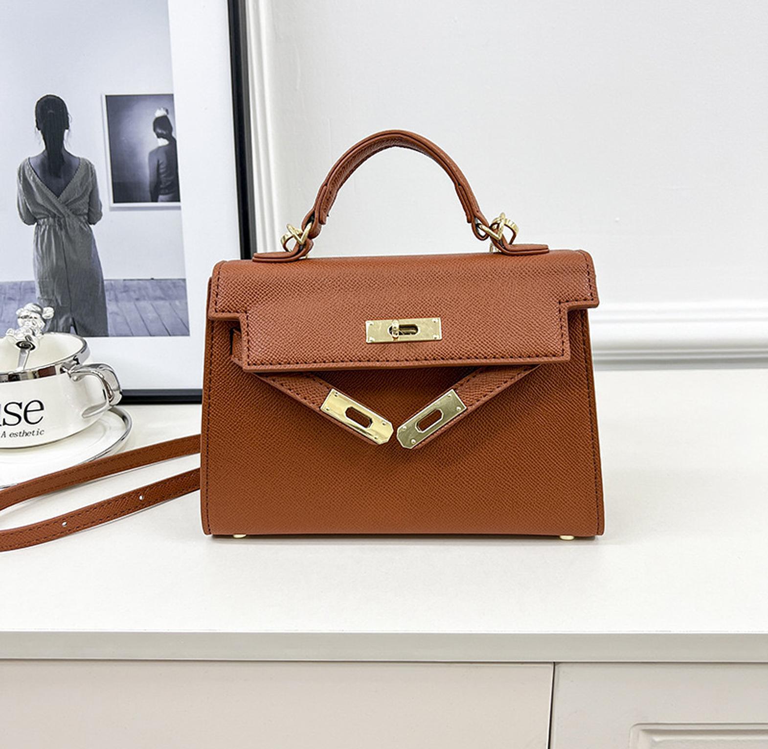 Elevate your everyday style with this elegant structured mini bag, designed with a sleek top handle and refined gold-tone hardware. Its timeless silhouette makes it perfect for both casual outings and dressed-up occasions. Compact yet practical, it fits your daily essentials while adding a polished finish to any outfit.