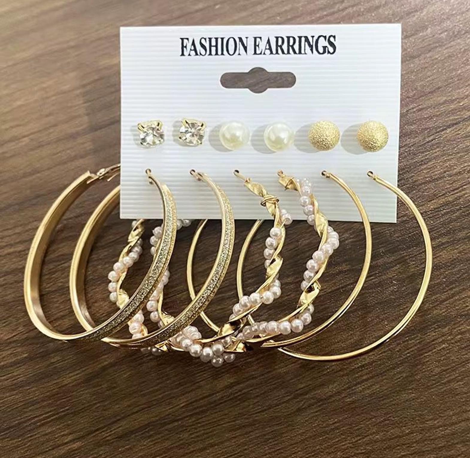 Curate a luxurious and dynamic ear stack with this extensive 6-pair earring collection, designed to provide a rich variety of textures and styles for any look. The entire set is finished in a warm, polished gold-tone color, ensuring a cohesive and sophisticated aesthetic.