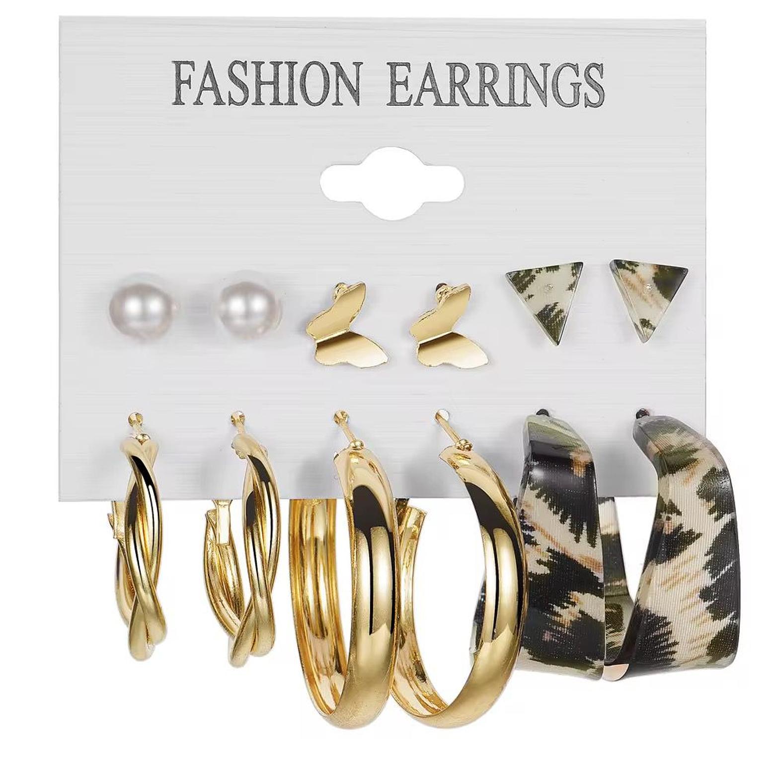 Add a fresh and fashion-forward element to your accessories with this versatile 6-pair earring collection. The set features a blend of classic metal designs and playful modern patterns, making it ideal for creating a curated and expressive ear stack.