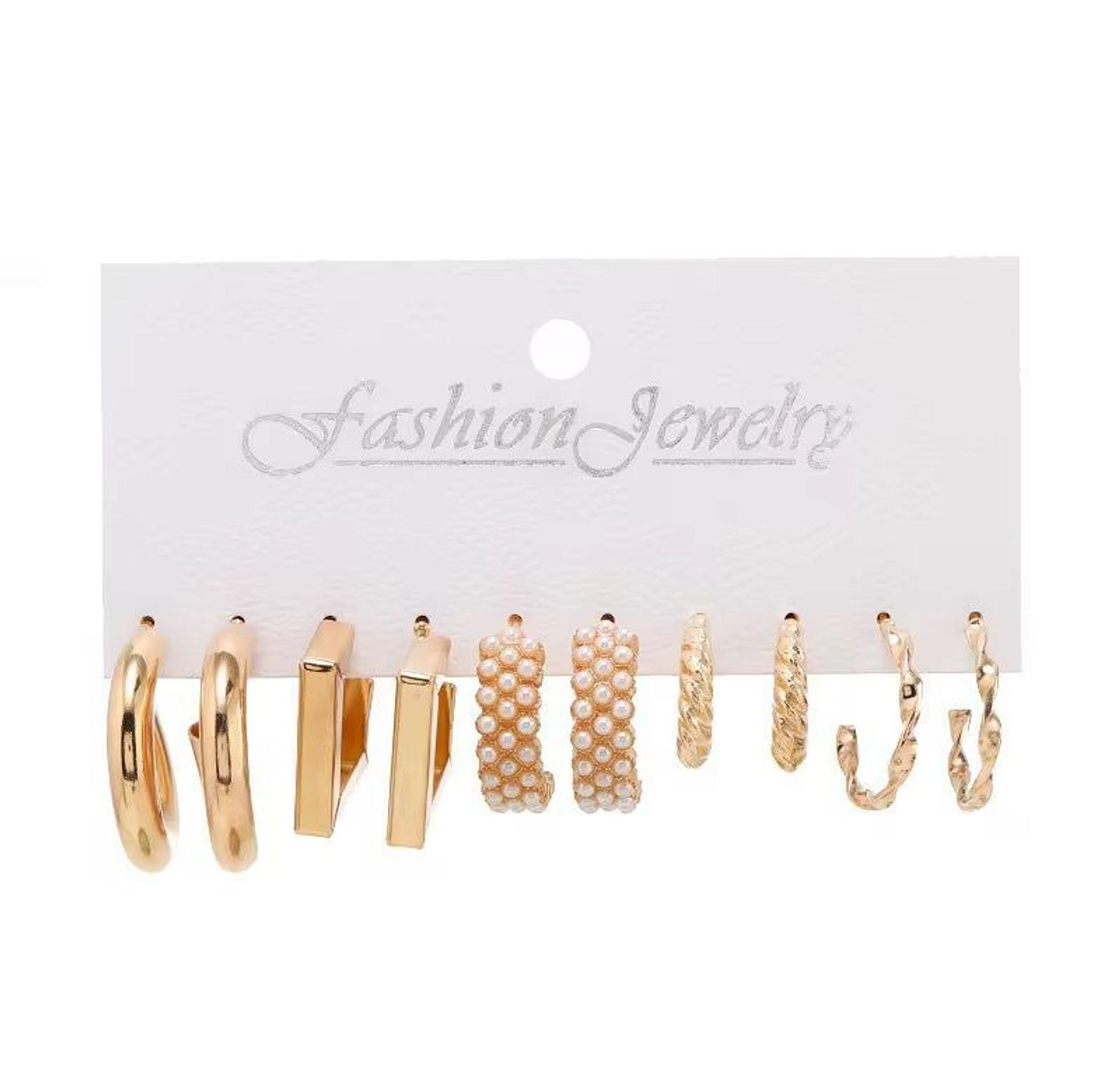 Twisted Texture Hoops: Two pairs of hoops featuring braided or hammered finishes, adding intricate detail and visual interest.