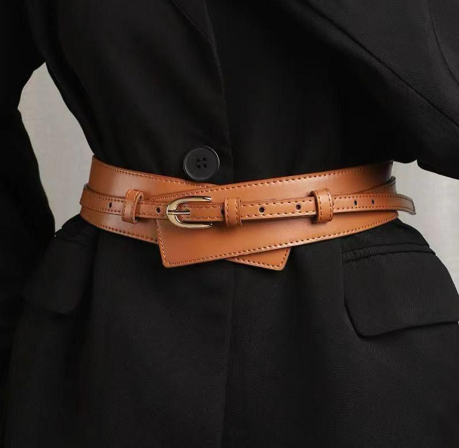 Make a statement with our Wide Waist Wrap Belt, designed to beautifully define your silhouette and elevate any outfit. Crafted from soft faux leather, this belt features a sleek tapering design that cinches the waist for a flattering fit — perfect for dresses, coats, or long shirts. Product Details: • Material: Premium faux leather • Total Length: 102 cm / 40.15 inches • Main Panel Length: 80 cm / 31.49 inches • Top Width: 5.5 cm / 2.16 inches • Middle Width: 3.4 cm / 1.33 inches • End Width: 1.3 cm / 0.51 inch • Fits Waist: 69–85 cm / 27–33.46 inches Why You’ll Love It: ✔️ Elegant wrap design for a cinched, hourglass effect ✔️ Adjustable fit for comfort and versatility ✔️ Instantly upgrades dresses, blazers, or outerwear Style tip: Perfect for styling over a flowy dress or blazer for a classy, put-together look.