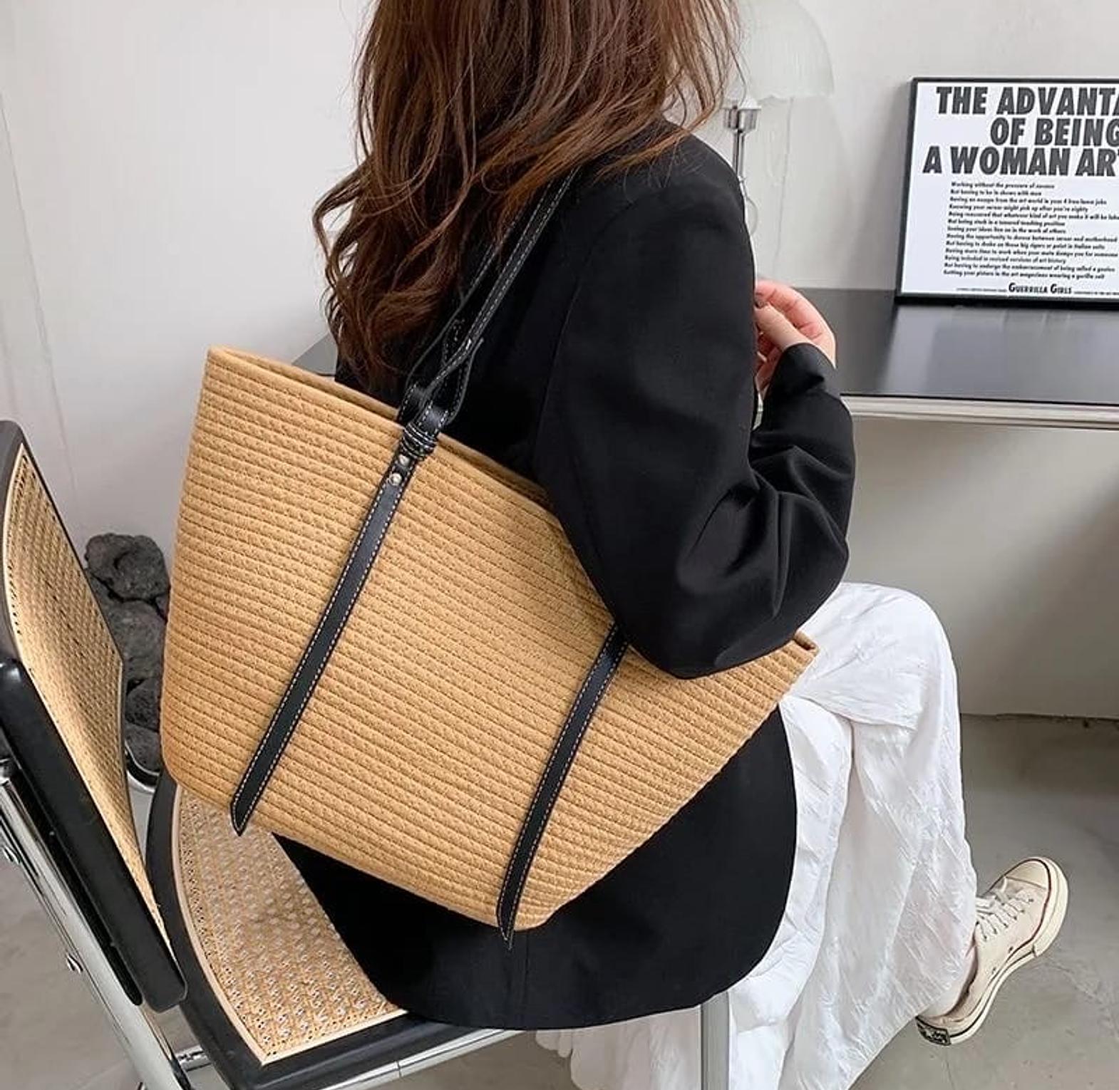 A spacious, beautifully woven tote bag designed for everyday convenience and effortless style. Made from durable, high-quality material, this tote offers plenty of room for all your essentials — perfect for work, shopping, travel, or beach days.