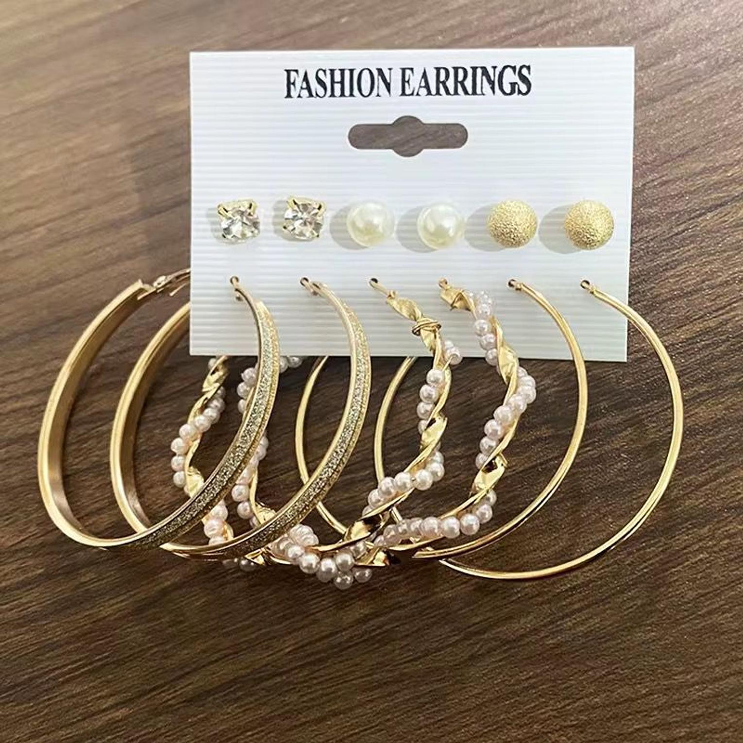 Curate a luxurious and dynamic ear stack with this extensive 6-pair earring collection, designed to provide a rich variety of textures and styles for any look. The entire set is finished in a warm, polished gold-tone color, ensuring a cohesive and sophisticated aesthetic.