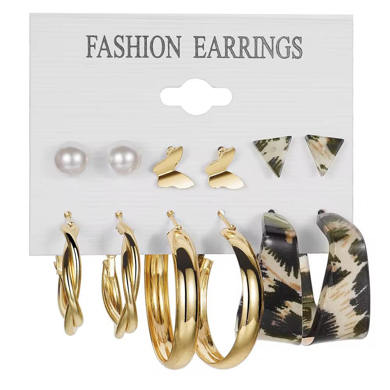 Add a fresh and fashion-forward element to your accessories with this versatile 6-pair earring collection. The set features a blend of classic metal designs and playful modern patterns, making it ideal for creating a curated and expressive ear stack.