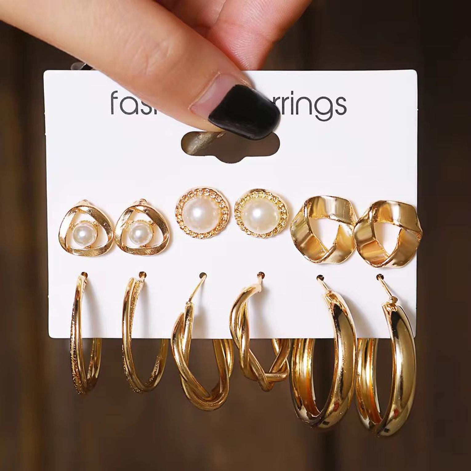 Elevate your accessory game with this versatile 6-pair earring collection, designed to provide a rich variety of textures and styles for any look. The entire set is finished in a warm, polished gold-tone color, ensuring a cohesive and luxurious aesthetic.