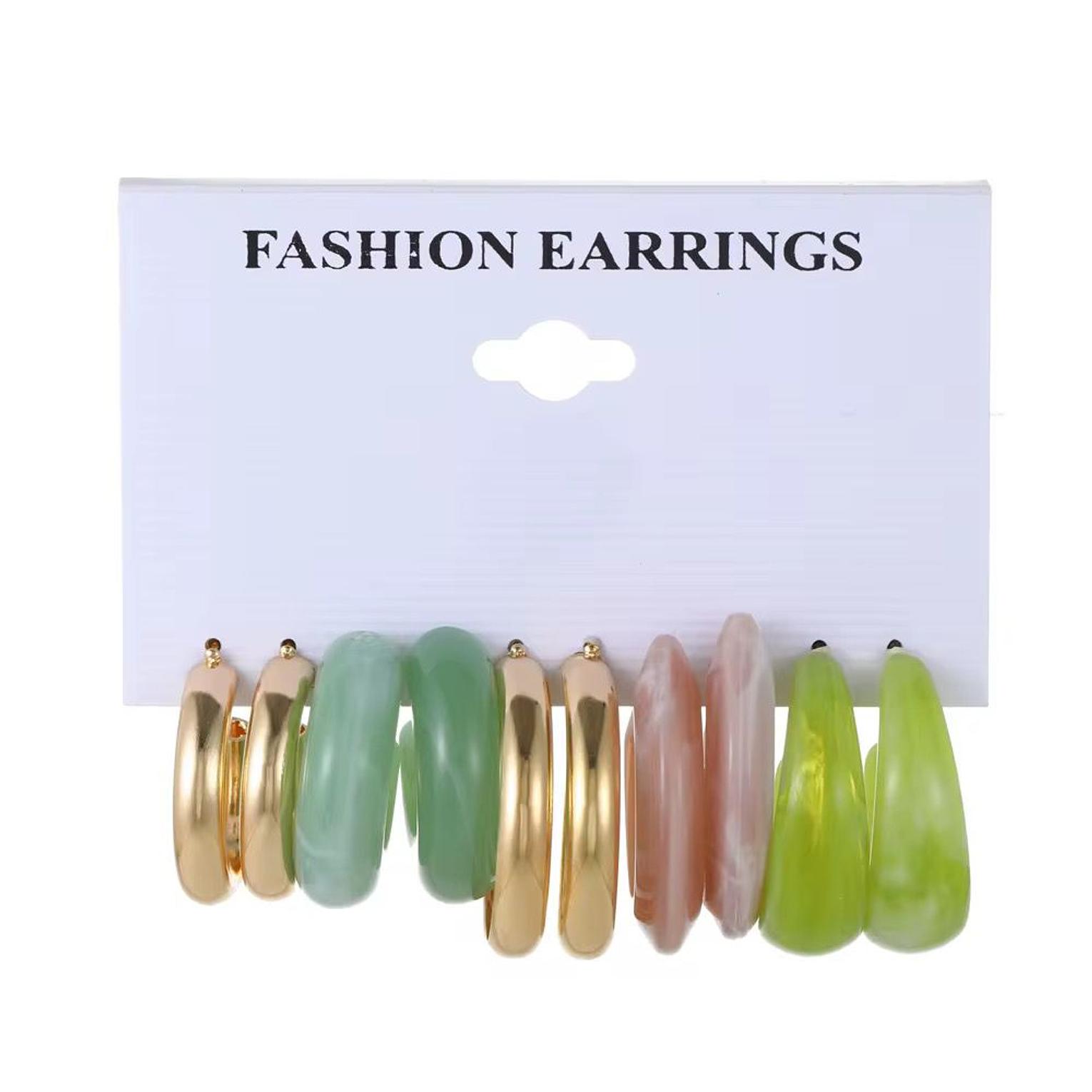 Infuse your accessory collection with a burst of contemporary style and color with this versatile 5-pair earring set. The collection expertly combines classic metallic elements with modern, vibrant resin, offering a chic, coordinated look.